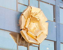 Three inaugural ribbons falling in unison: