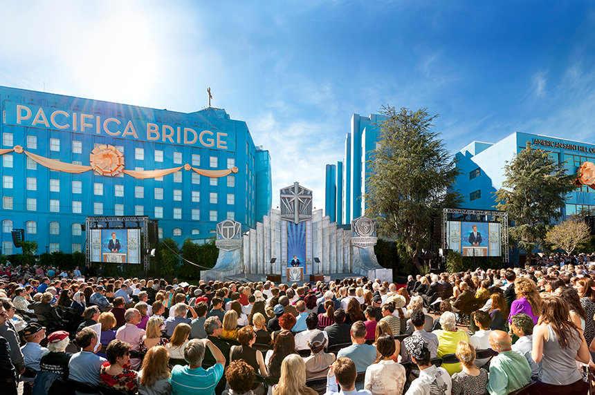To underscore the significance of the occasion, dedication ceremonies were led by Chairman of the Board Religious Technology Center, Mr. David Miscavige. Mr. Miscavige addressed Scientologists in attendance stating: “Today, we fulfil L. Ron Hubbard’s vision of the Ideal Pacifica Bridge for all Scientologists of Los Angeles and, indeed, across America. For here stand the physical pillars of a Bridge now accessible to all in our Golden Age: a Bridge that embodies the ascent to total spiritual freedom, a Bridge that spans not only a boulevard—but extends to eternity itself.”
