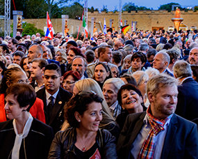 Beyond the Manor gates, past the entrances and down the long sweeping drive to the pavilion and the Great Hall, to a stage erected under cover of a massive marquee, members of the International Association of Scientologists from more than 65 nations filled the air with diverse language as they walked into the arena with a purpose—to celebrate their humanity and that of all mankind.