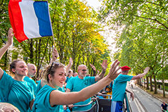 As Mr. Miscavige next told the exuberant multinational crowd, many of them waving the tricolored flag of France, “If ever there was an example of flourishing and prospering in the face of suppression, this is it. Moreover, it emphasizes the fact that, to one degree or another, every IAS Anniversary is a victory celebration.”