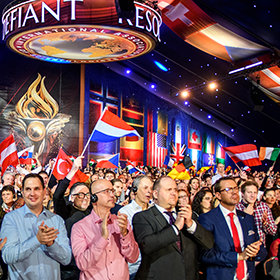 As the global congregation traversed the vibrant ruby-red carpet, they reveled in the enormous Grand Marquee and nearly blew the roof off as Mr. Miscavige arrived onstage to a ground-rumbling ovation lasting minutes. It was an expression not only of admiration for Scientology’s leader, but an acknowledgment of the enormity of the celebration at hand.