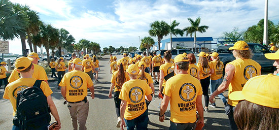 Then, when two high-powered hurricanes hit the same areas of Florida in just 13 days, creating destruction of twice-battered homes and life-threatening floods, the VM army based at Flag, Scientology’s spiritual headquarters in Clearwater, turned out in force. More than 1,200 VMs delivered rescue operations to some 200 homes, while clearing more than 100 tons of storm debris all over Pinellas County. The VMs’ recovery mission spanned several weeks, drawing accolades from the grateful Federal Emergency Authority.
