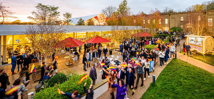 All begins on this crisp autumn evening, as the joyful notes of Great Highland Bagpipes cut the air, while the clatter of horseshoes blend with the click of high heels and the resounding beat of a drum corps reverberates off castle turrets.