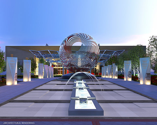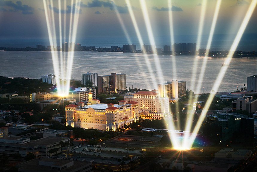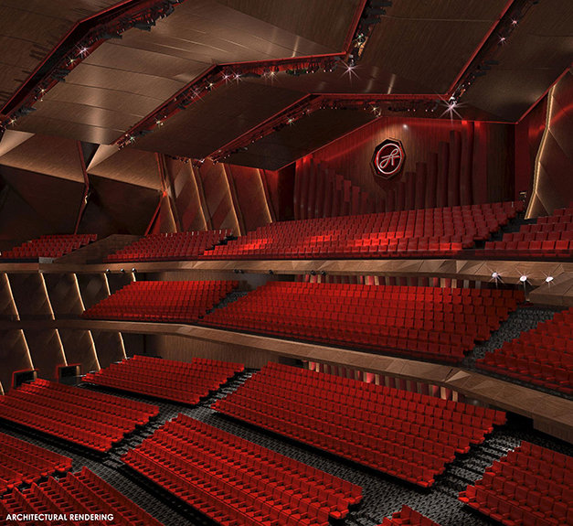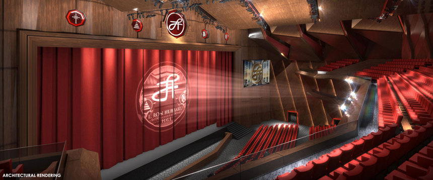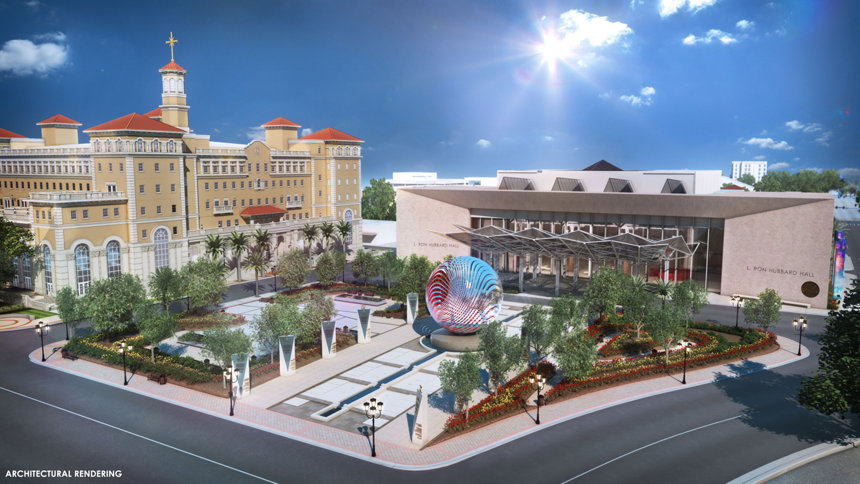 There was also the momentous announcement of the future L. Ron Hubbard Hall in Clearwater, a magnificent auditorium designed to seat thousands with convention and banquet conversion capability, complemented by a beautifully-appointed L. Ron Hubbard Park. The sleek digital design concept for the project presented to the gathered birthday crowd a facility set to span a full city block in Downtown Clearwater.